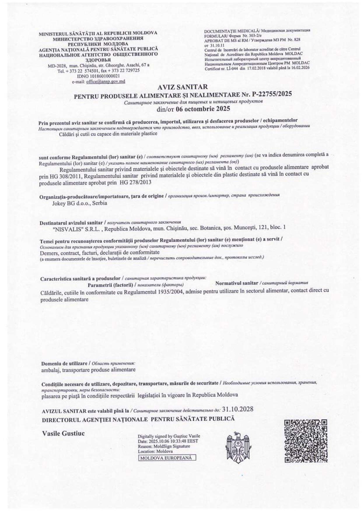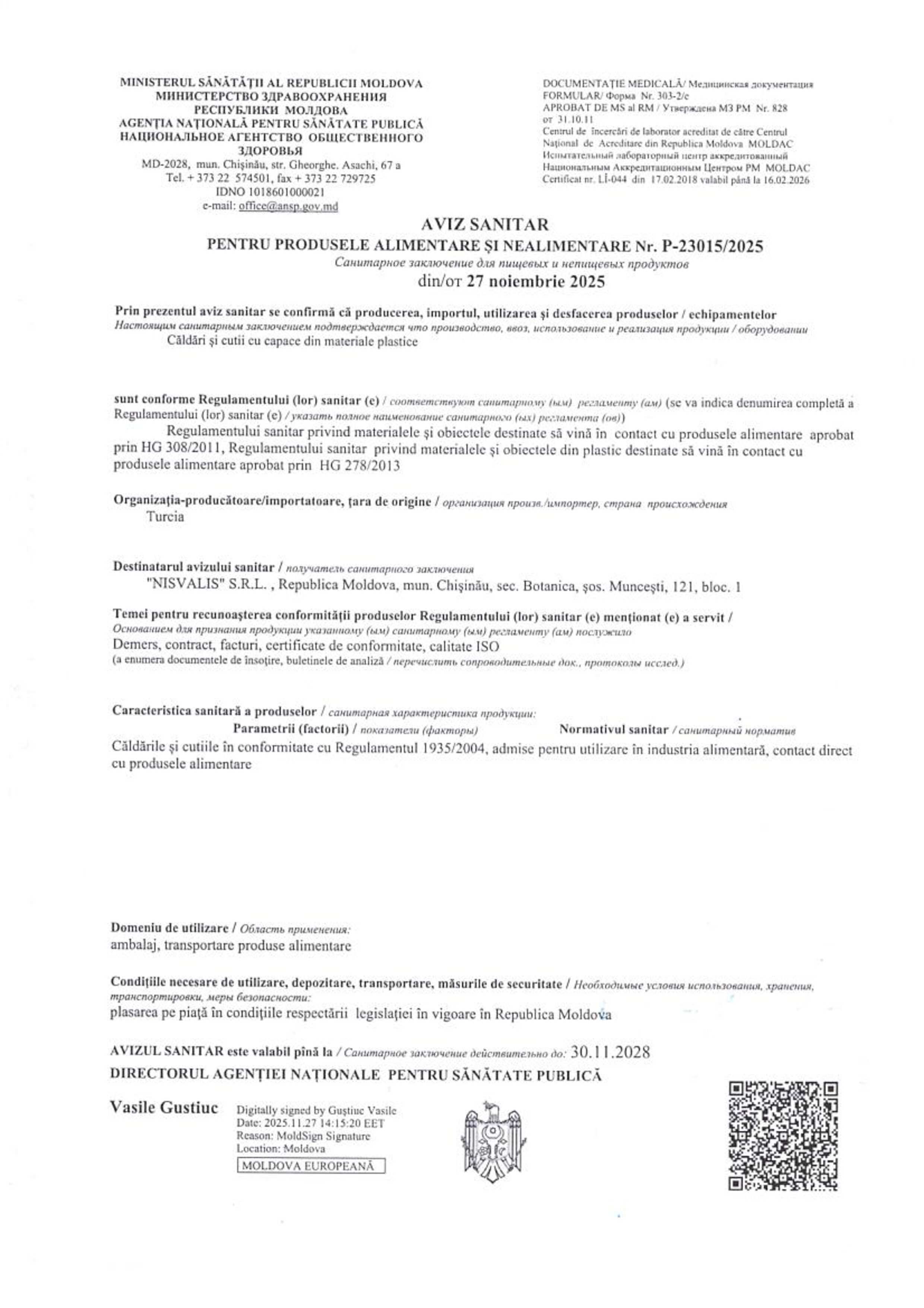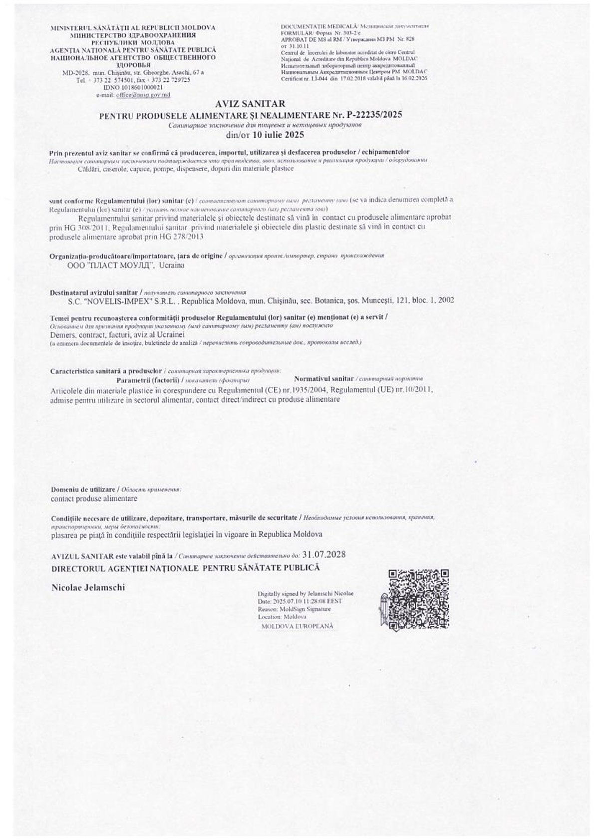 Aviz sanitar Plast Mould (caserole PP, căldări)