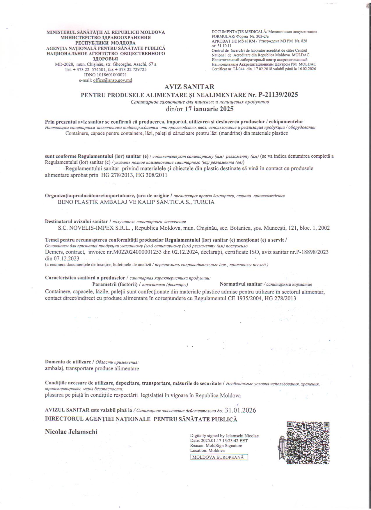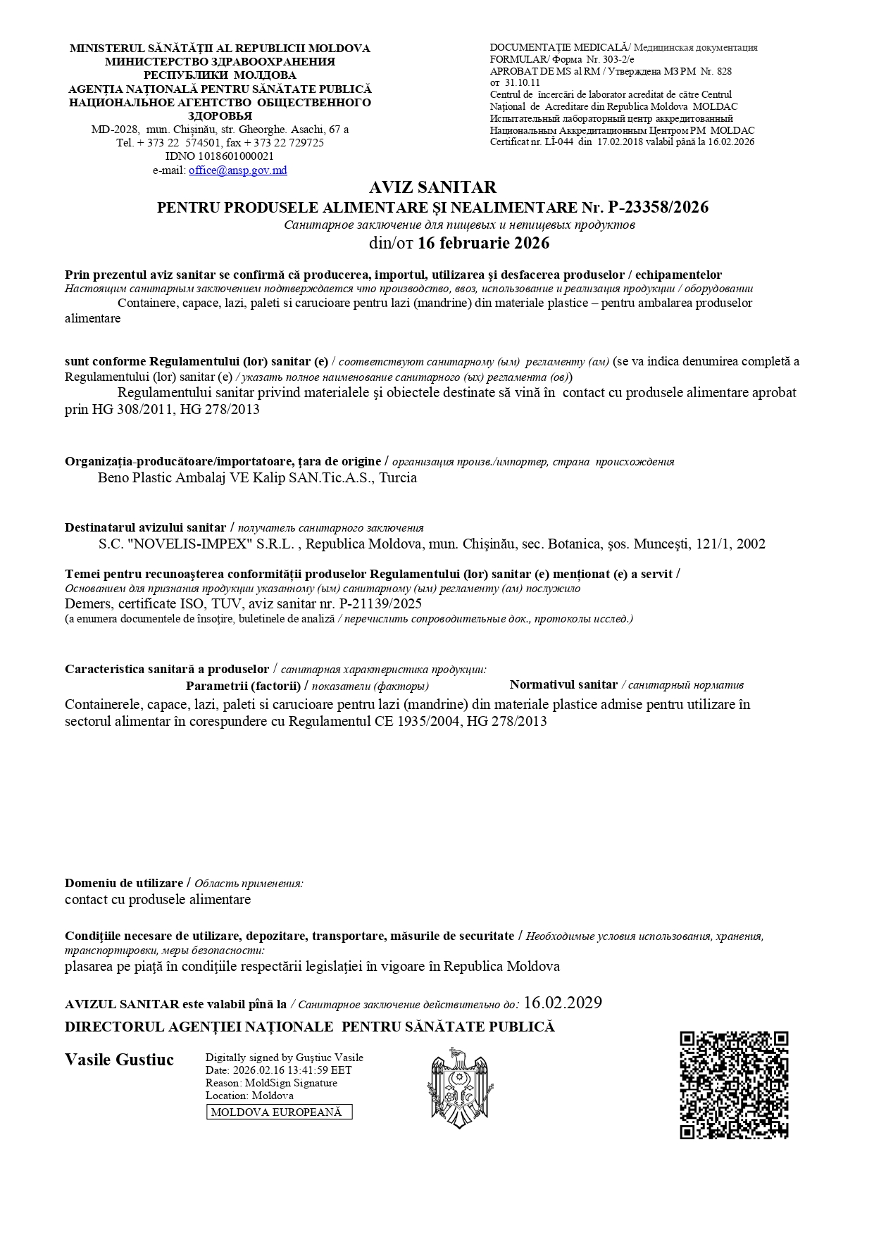 Aviz sanitar Beno Plastik Ambalaj (lăzi, containere din plastic)