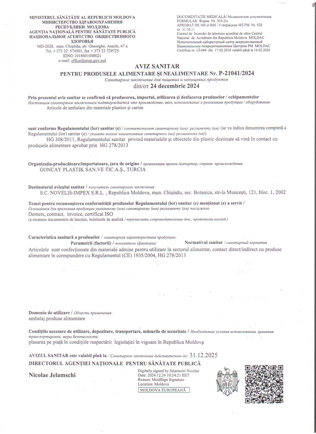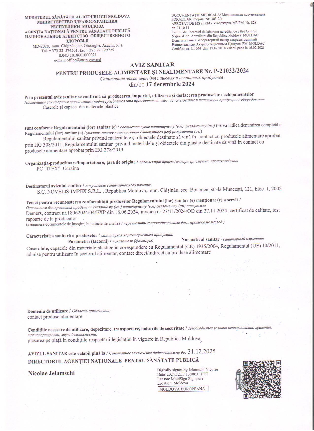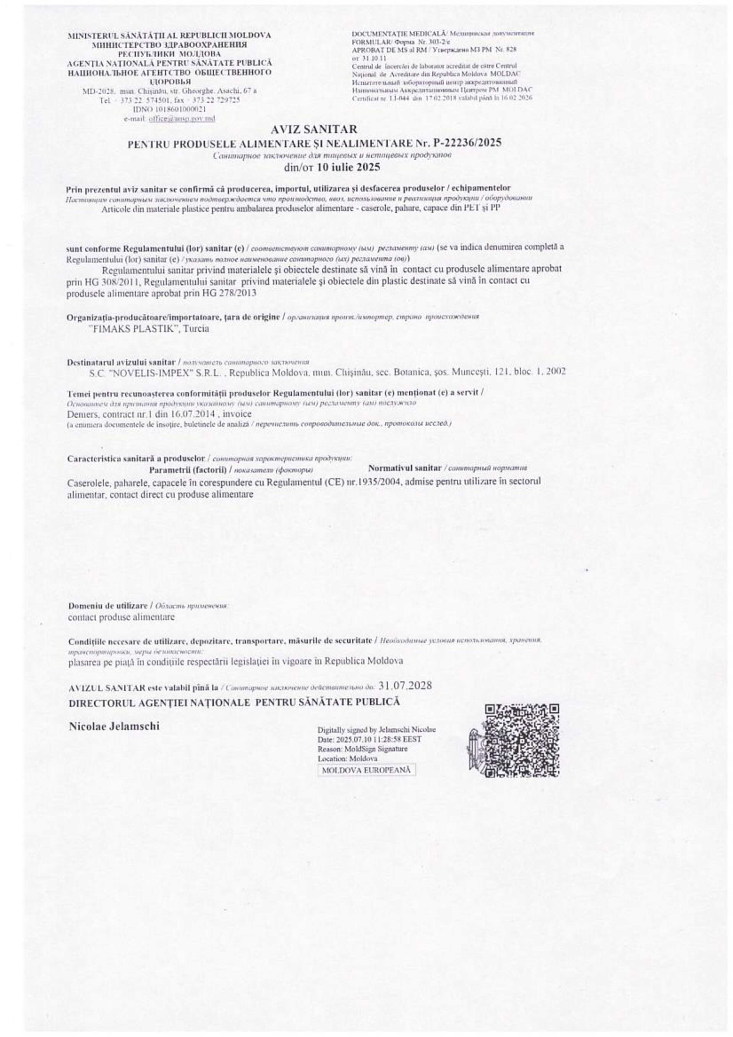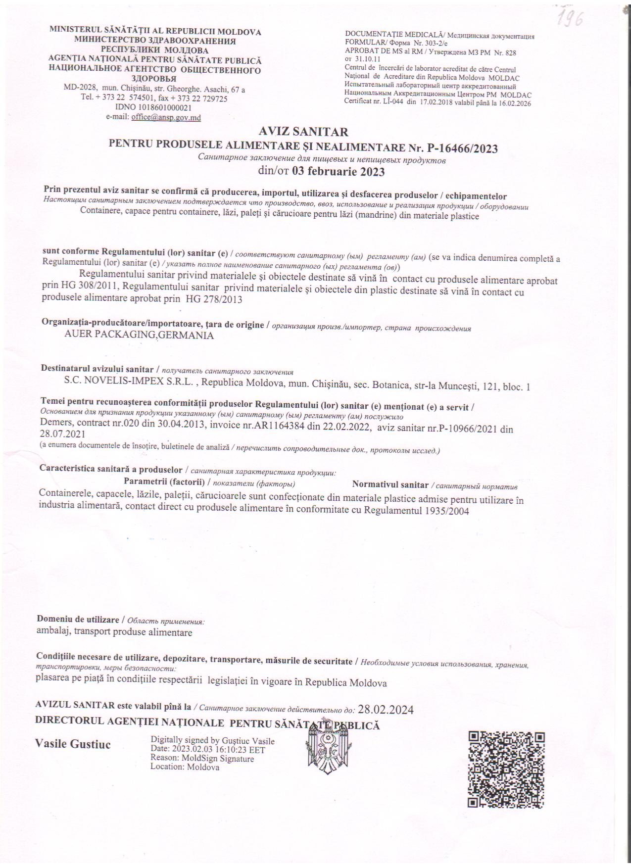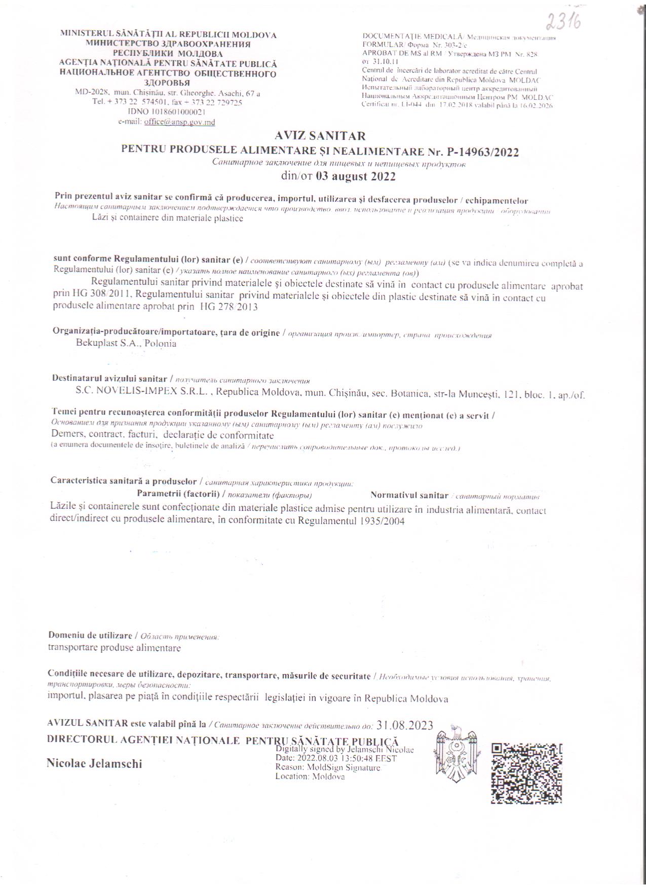 Aviz sanitar Plast Mould (caserole PP, căldări)